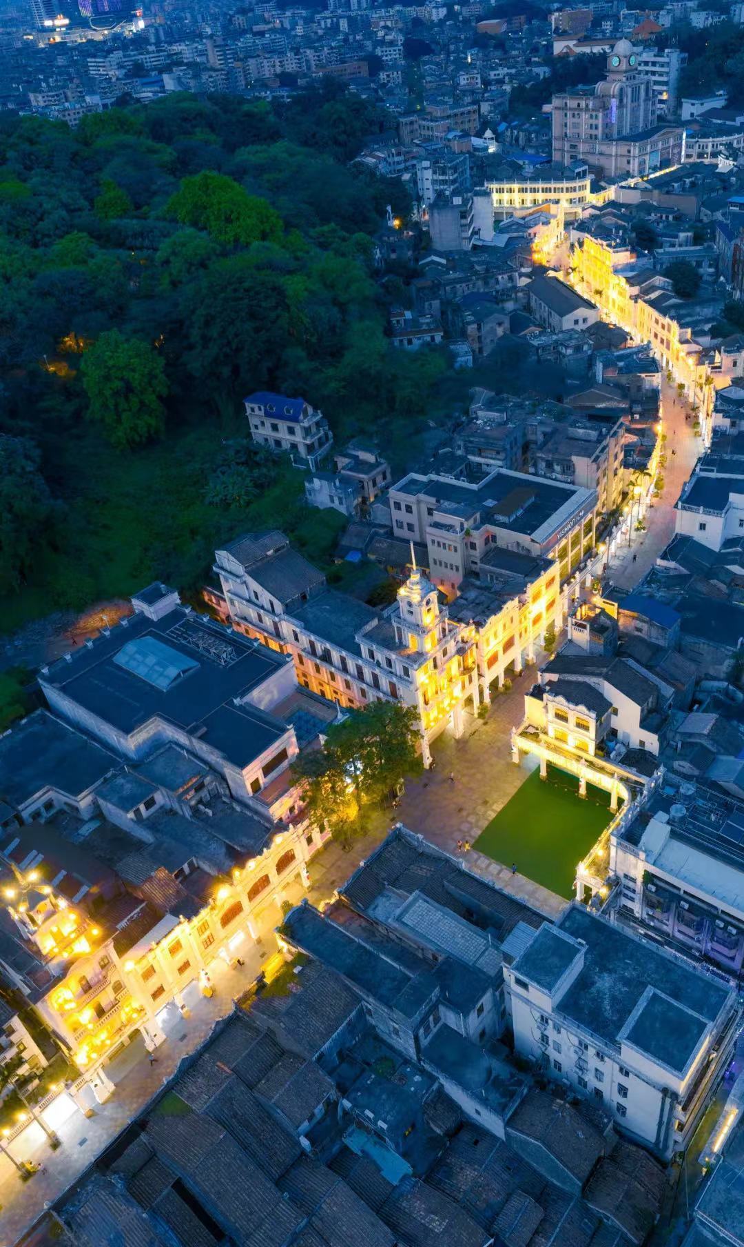 夜幕莅临,北京路的千年古说念在眼下生辉,骑楼灯光照射着当代高贵。