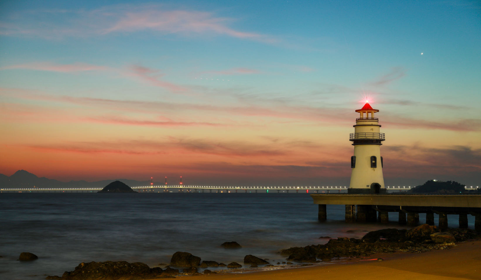 日出期间的珠海爱情邮局灯塔亮堂。钱文攀 摄