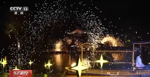 夜幕驾临,泉水灯光秀、打铁花等名目轮替演出。光影交汇间,古城韵味与节日氛围拉满,引得游东谈主藏身不雅赏。