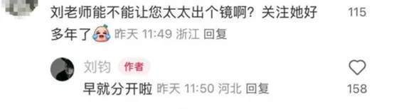 前段时分,刘钧在驳倒区回复说:早就分开啦!