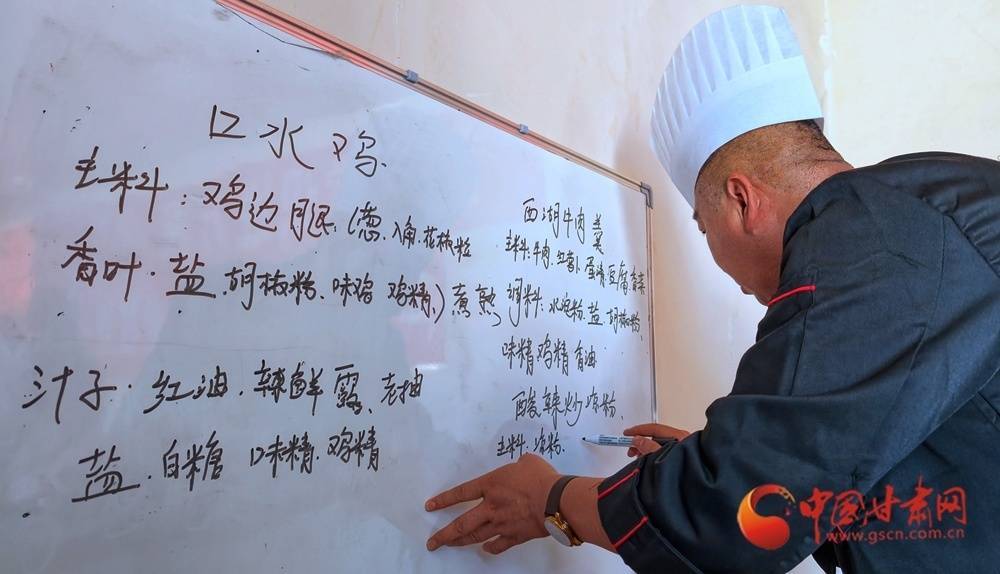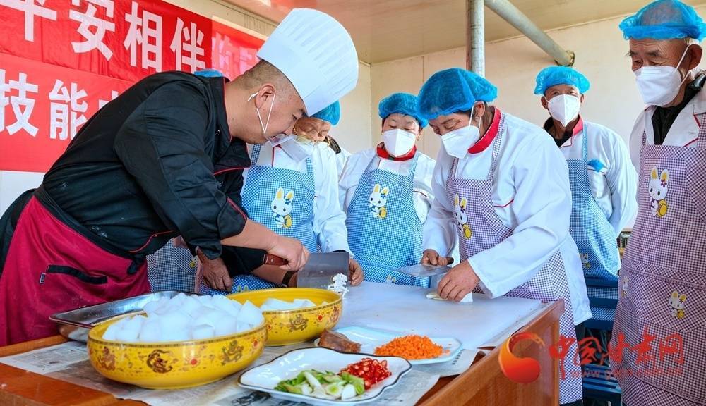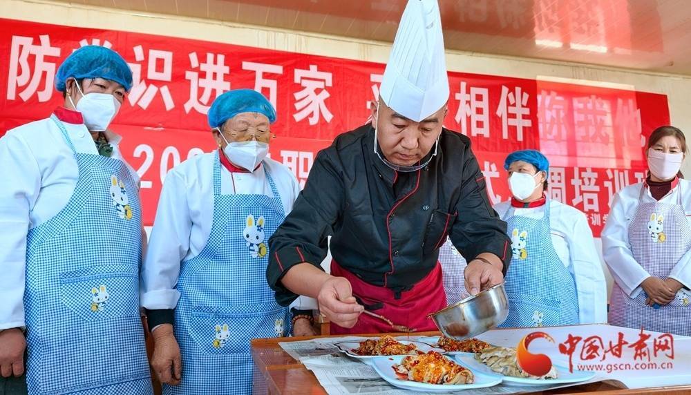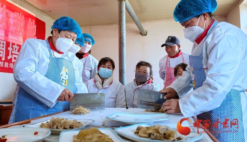 11月4日,金塔县古城乡头号村,村民在培训古道引导下正在学习厨艺。